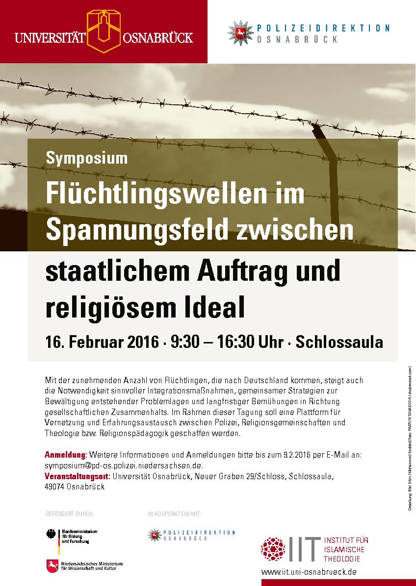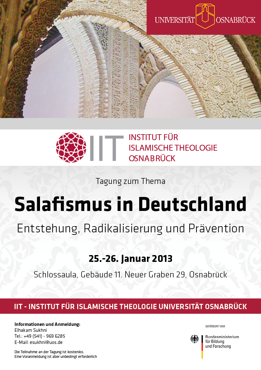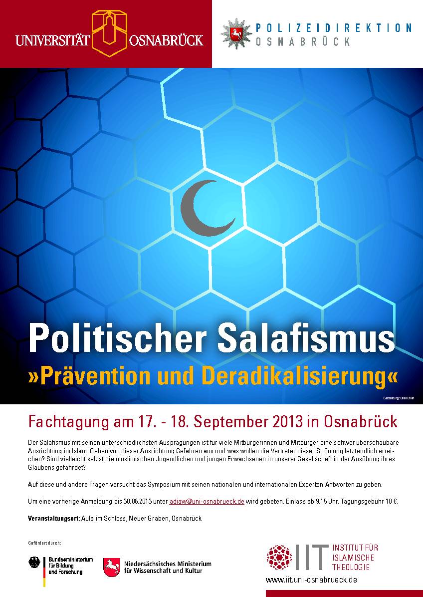 - 01.03.2014 | Neosalafistische Mobilisierung? Prävention in Schule, Jugendhilfe und Gemeinde. Ein Symposium der Polizeidirektion Osnabrück und des Instituts für islamische Theologie (IIT) an der Universität Osnabrück. Plakat
